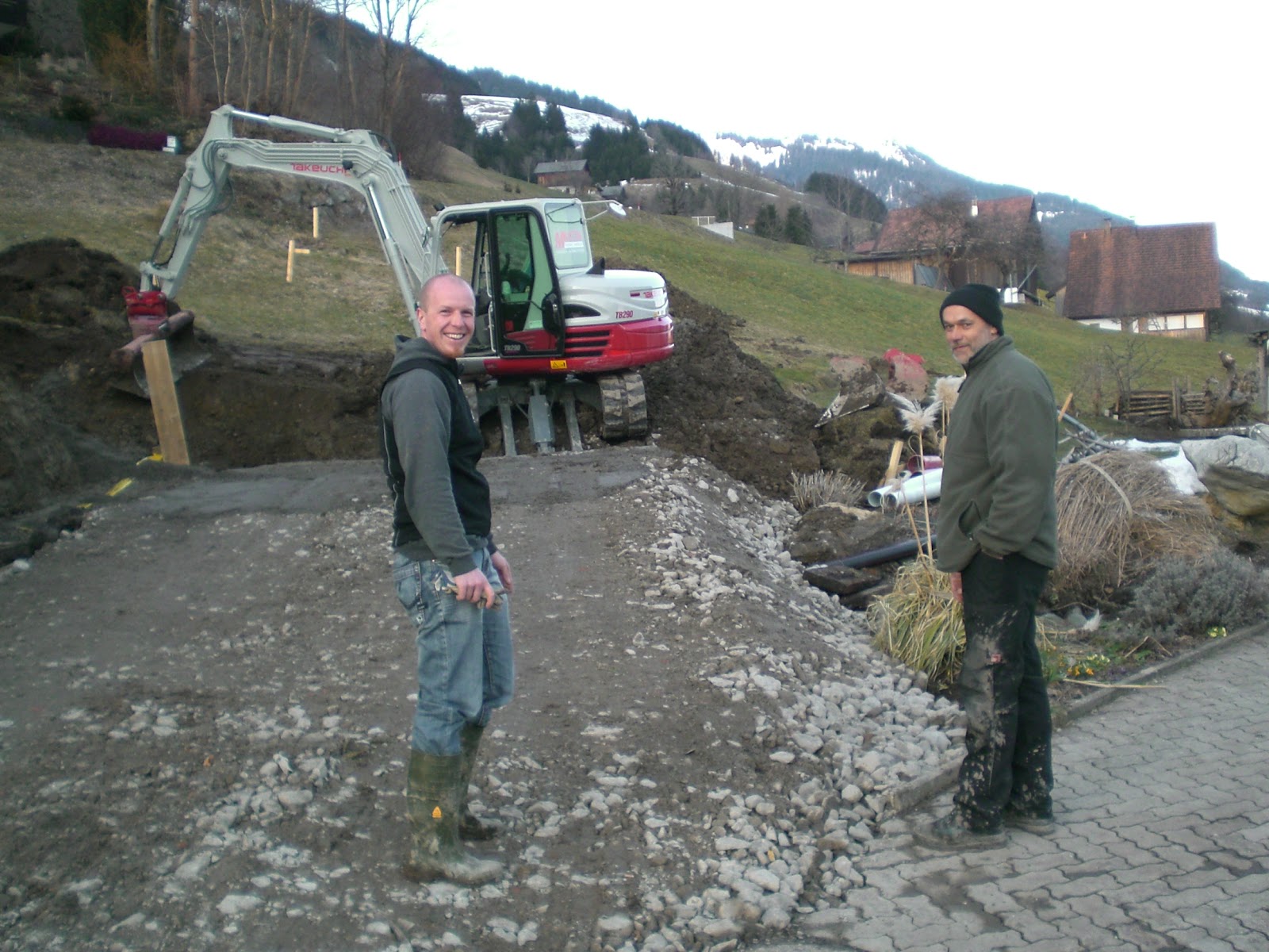 Am Ende des Tages haben Bauherr und "Aushubverantwortlicher" Konrad gut lachen!